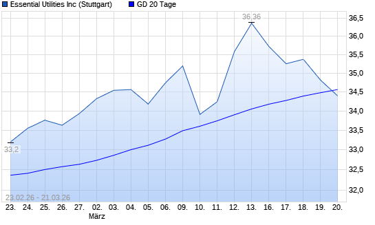 Mit dem Rücksetzer auf 34,17 EUR hat die Aqua America-Aktie am 20.03.2026 die 20-Tage-Linie nach unten gekreuzt.