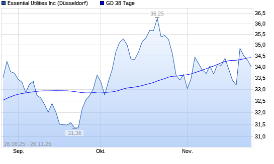 Mit dem Rücksetzer auf 34,15 EUR hat die Aqua America-Aktie am 25.11.2025 die 38-Tage-Linie nach unten gekreuzt.
