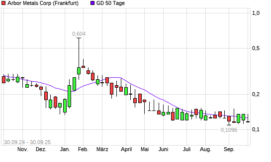 Mit dem Rücksetzer auf 0,12 EUR hat die Arbor Metals-Aktie am 29.09.2025 die 50-Tage-Linie nach unten gekreuzt.