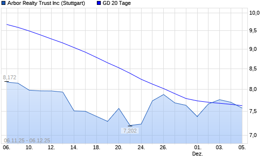 Mit dem Rücksetzer auf 7,58 EUR hat die Arbor Realty Trust-Aktie am 05.12.2025 die 20-Tage-Linie nach unten gekreuzt.