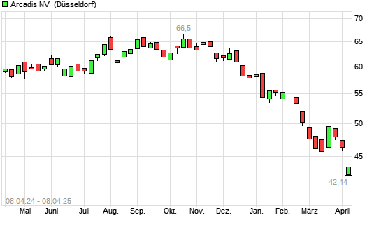 Mit dem Rücksetzer auf 42,22 EUR hat die Arcadis-Aktie (ISIN NL0006237562) am 07.04.2025 ein neues 12-Monats-Tief erreicht und damit den Kurs vom 04.04.2025 eingestellt.