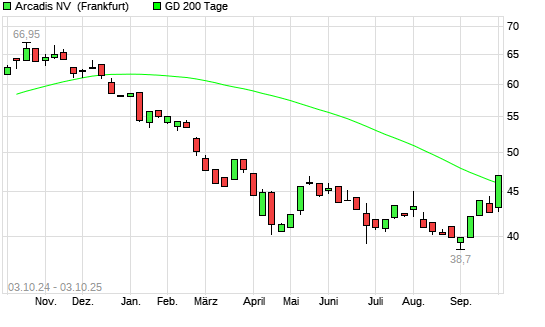 Mit dem Anstieg auf 46,88 EUR hat die Arcadis-Aktie am 02.10.2025 die 200-Tage-Linie nach oben gekreuzt.