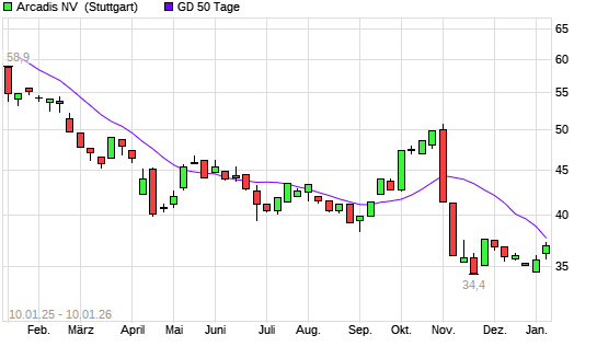 Mit dem Rücksetzer auf 36,32 EUR hat die Arcadis-Aktie am 09.01.2026 die 50-Tage-Linie nach unten gekreuzt.