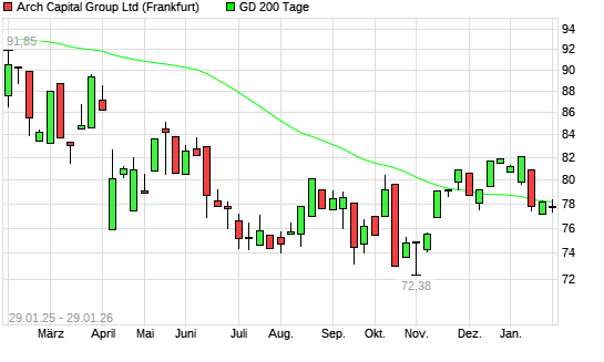 Mit dem Rücksetzer auf 77,34 EUR hat die Arch Capital Group-Aktie am 28.01.2026 die 200-Tage-Linie nach unten gekreuzt.
