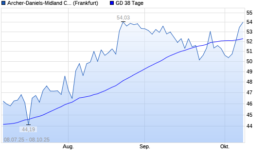 Mit dem Anstieg auf 53,45 EUR hat die Archer-Daniels-Midland-Aktie am 07.10.2025 die 38-Tage-Linie nach oben gekreuzt.
