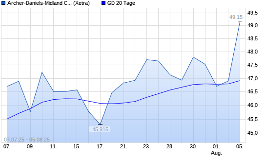 Mit dem Rücksetzer auf 46,49 EUR hat die Archer-Daniels-Midland-Aktie am 04.08.2025 die 20-Tage-Linie nach unten gekreuzt.
