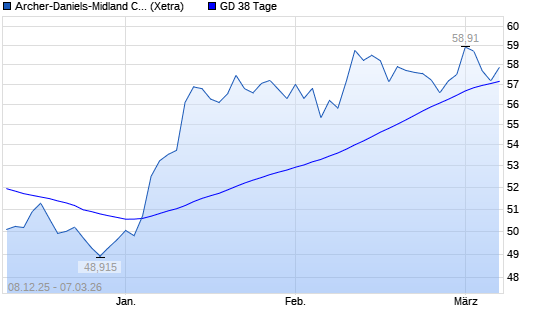 Mit dem Rücksetzer auf 57,08 EUR hat die Archer-Daniels-Midland-Aktie am 06.03.2026 die 38-Tage-Linie nach unten gekreuzt.