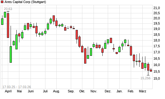 Mit dem Rücksetzer auf 15,37 EUR hat die Ares Capital Corporation-Aktie (ISIN US04010L1035) am 16.03.2026 ein neues 3-Jahres-Tief erreicht und damit den Kurs vom 24.03.2023 eingestellt.