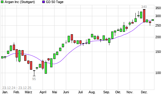 Mit dem Anstieg auf 292,00 EUR hat die Argan-Aktie am 22.12.2025 die 50-Tage-Linie nach oben gekreuzt.