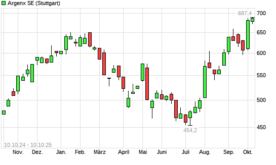 Mit dem Anstieg auf 698,60 EUR hat die Argenx-Aktie (ISIN NL0010832176) am 09.10.2025 ein neues All-Time-High erreicht und damit den Kurs vom 08.10.2025 eingestellt.