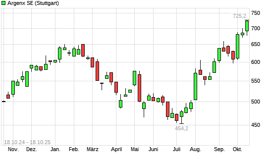 Mit dem Anstieg auf 719,60 EUR hat die Argenx-Aktie (ISIN NL0010832176) am 17.10.2025 ein neues All-Time-High erreicht und damit den Kurs vom 16.10.2025 eingestellt.