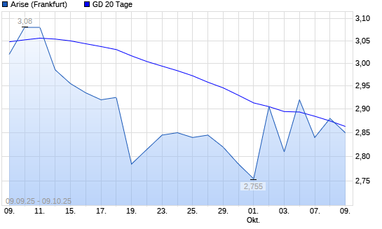 Mit dem Anstieg auf 2,88 EUR hat die Arise-Aktie am 08.10.2025 die 20-Tage-Linie nach oben gekreuzt.