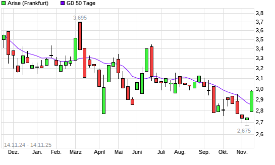 Mit dem Anstieg auf 2,90 EUR hat die Arise-Aktie am 13.11.2025 die 50-Tage-Linie nach oben gekreuzt.