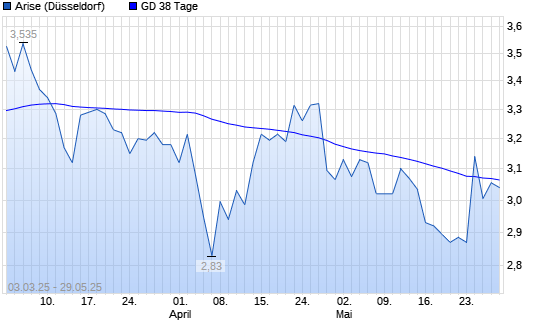 Mit dem Rücksetzer auf 3,04 EUR hat die Arise-Aktie am 28.05.2025 die 38-Tage-Linie nach unten gekreuzt.