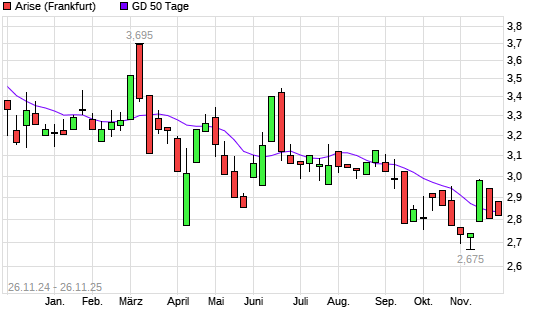 Mit dem Rücksetzer auf 2,82 EUR hat die Arise-Aktie am 25.11.2025 die 50-Tage-Linie nach unten gekreuzt.