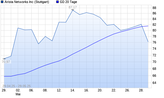 Mit dem Anstieg auf 82,51 EUR hat die Arista Networks-Aktie am 28.05.2025 die 20-Tage-Linie nach oben gekreuzt.