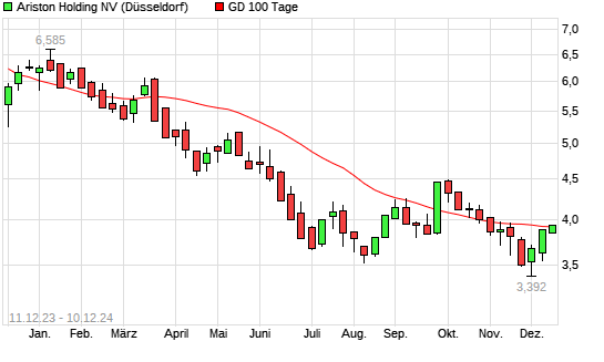 Mit dem Anstieg auf 3,94 EUR hat die Ariston-Aktie am 09.12.2024 die 100-Tage-Linie nach oben gekreuzt.