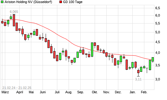 Mit dem Anstieg auf 3,67 EUR hat die Ariston-Aktie am 20.02.2025 die 100-Tage-Linie nach oben gekreuzt.