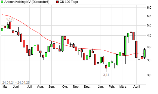 Mit dem Anstieg auf 3,74 EUR hat die Ariston-Aktie am 23.04.2025 die 100-Tage-Linie nach oben gekreuzt.