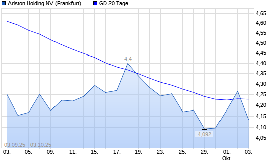 Mit dem Anstieg auf 4,27 EUR hat die Ariston-Aktie am 02.10.2025 die 20-Tage-Linie nach oben gekreuzt.