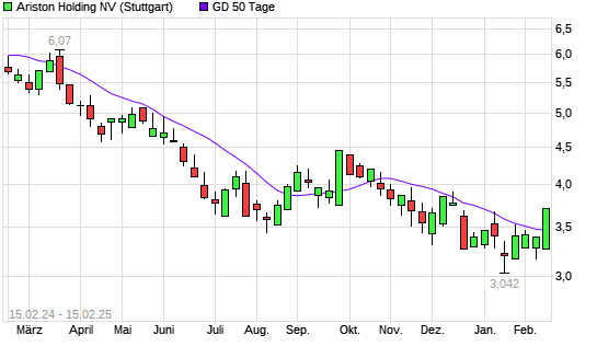 Mit dem Anstieg auf 3,60 EUR hat die Ariston-Aktie am 14.02.2025 die 50-Tage-Linie nach oben gekreuzt.