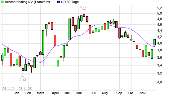 Mit dem Anstieg auf 3,95 EUR hat die Ariston-Aktie am 24.11.2025 die 50-Tage-Linie nach oben gekreuzt.