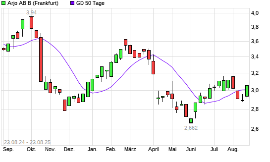 Mit dem Anstieg auf 3,06 EUR hat die Arjo-Aktie am 22.08.2025 die 50-Tage-Linie nach oben gekreuzt.