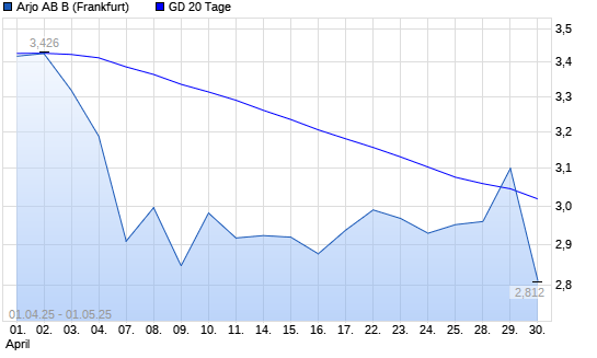 Mit dem Rücksetzer auf 2,81 EUR hat die Arjo-Aktie am 30.04.2025 die 20-Tage-Linie nach unten gekreuzt.