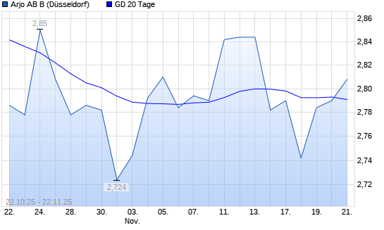 Mit dem Rücksetzer auf 2,76 EUR hat die Arjo-Aktie am 21.11.2025 die 20-Tage-Linie nach unten gekreuzt.