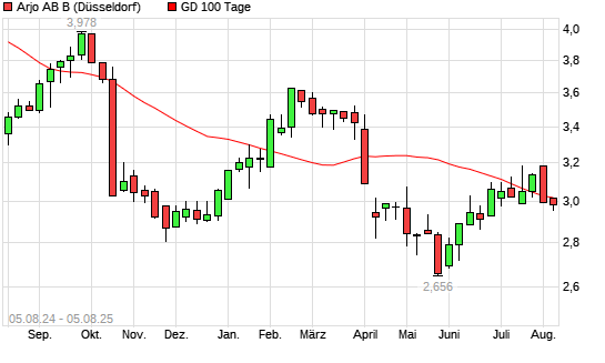 Mit dem Rücksetzer auf 2,99 EUR hat die Arjo-Aktie am 04.08.2025 die 100-Tage-Linie nach unten gekreuzt.Die Arjo-Aktie befindet sich seit dem 31.07.2025 im langfristigen Abwärtstrend und ...weiterlesen
