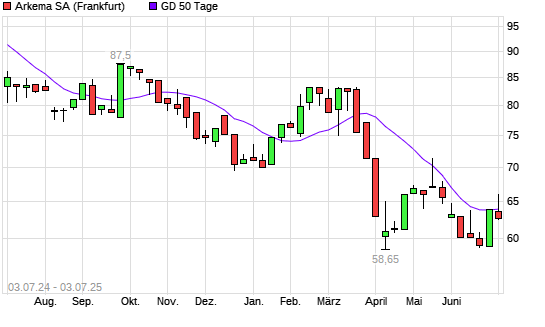 Mit dem Anstieg auf 65,50 EUR hat die Arkema-Aktie am 02.07.2025 die 50-Tage-Linie nach oben gekreuzt.