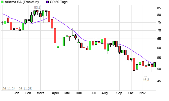 Mit dem Anstieg auf 52,65 EUR hat die Arkema-Aktie am 25.11.2025 die 50-Tage-Linie nach oben gekreuzt.