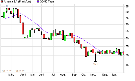 Mit dem Anstieg auf 51,60 EUR hat die Arkema-Aktie am 29.01.2026 die 50-Tage-Linie nach oben gekreuzt.