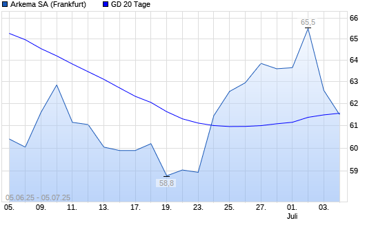 Mit dem Rücksetzer auf 61,50 EUR hat die Arkema-Aktie am 04.07.2025 die 20-Tage-Linie nach unten gekreuzt.