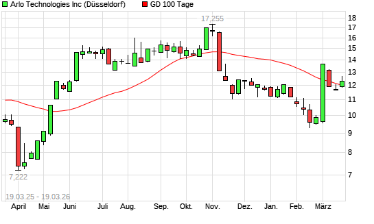 Mit dem Anstieg auf 12,20 EUR hat die Arlo Technologies-Aktie am 18.03.2026 die 100-Tage-Linie nach oben gekreuzt.
