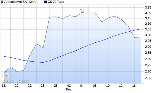 Mit dem Rücksetzer auf 3,02 EUR hat die Aroundtown-Aktie am 16.12.2024 die 20-Tage-Linie nach unten gekreuzt.