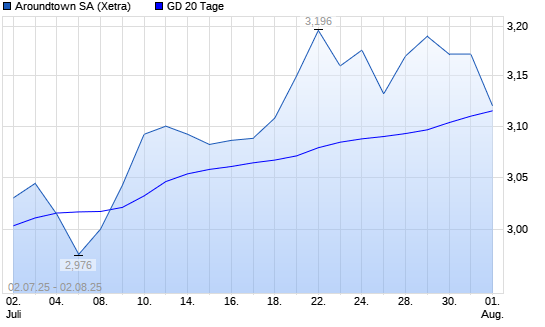 Mit dem Rücksetzer auf 3,09 EUR hat die Aroundtown-Aktie am 01.08.2025 die 20-Tage-Linie nach unten gekreuzt.