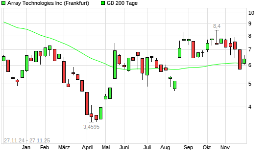 Mit dem Anstieg auf 6,60 EUR hat die Array Technologies-Aktie am 26.11.2025 die 200-Tage-Linie nach oben gekreuzt.