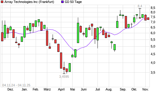 Mit dem Anstieg auf 7,42 EUR hat die Array Technologies-Aktie am 03.11.2025 die 50-Tage-Linie nach oben gekreuzt.