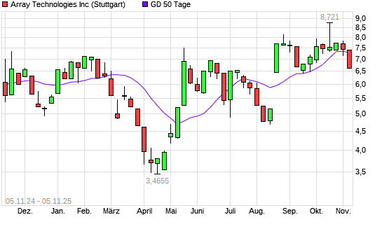 Mit dem Rücksetzer auf 7,23 EUR hat die Array Technologies-Aktie am 04.11.2025 die 50-Tage-Linie nach unten gekreuzt.