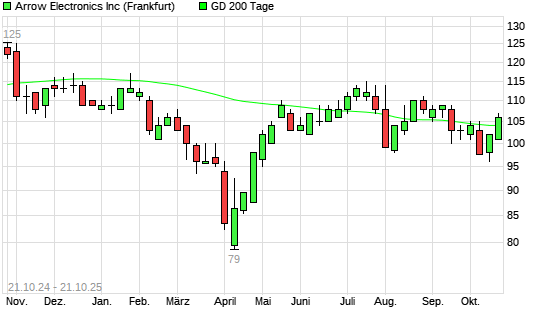 Mit dem Anstieg auf 107,00 EUR hat die Arrow Electronics-Aktie am 20.10.2025 die 200-Tage-Linie nach oben gekreuzt.