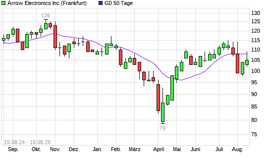 Mit dem Rücksetzer auf 107,00 EUR hat die Arrow Electronics-Aktie am 14.08.2025 die 50-Tage-Linie nach unten gekreuzt.