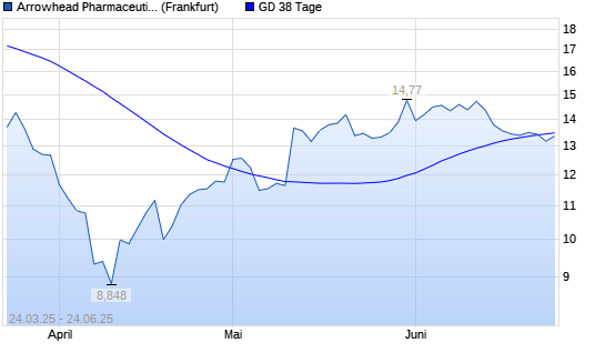 Mit dem Rücksetzer auf 13,18 EUR hat die Arrowhead Pharmaceuticals-Aktie am 23.06.2025 die 38-Tage-Linie nach unten gekreuzt.