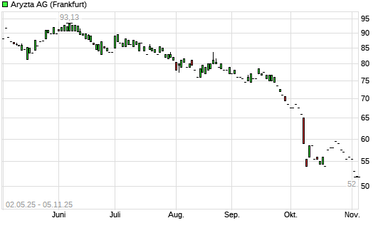 Mit dem Rücksetzer auf 53,00 EUR hat die Aryzta-Aktie (ISIN CH1425684714) am 04.11.2025 ein neues 12-Monats-Tief erreicht und damit den Kurs vom 09.10.2025 eingestellt.