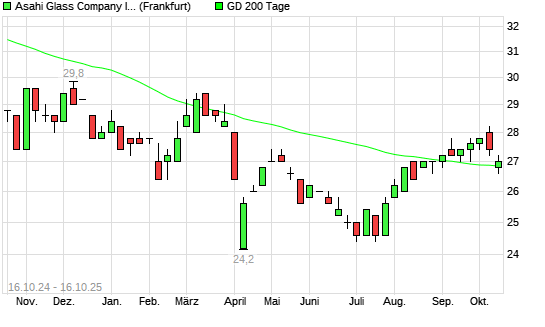 Mit dem Anstieg auf 27,20 EUR hat die Asahi Glass Company-Aktie am 15.10.2025 die 200-Tage-Linie nach oben gekreuzt.