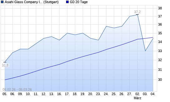 Mit dem Rücksetzer auf 33,60 EUR hat die Asahi Glass Company-Aktie am 04.03.2026 die 20-Tage-Linie nach unten gekreuzt.Die Asahi Glass Company-Aktie befindet sich seit dem ...weiterlesen