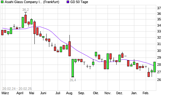 Mit dem Anstieg auf 28,20 EUR hat die Asahi Glass Company-Aktie am 19.02.2025 die 50-Tage-Linie nach oben gekreuzt.Die Asahi Glass Company-Aktie befindet sich seit dem 15.05.2024 im langfristigen ...weiterlesen
