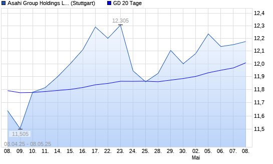 Mit dem Rücksetzer auf 12,18 EUR hat die Asahi Group-Aktie am 07.05.2025 die 20-Tage-Linie nach unten gekreuzt.