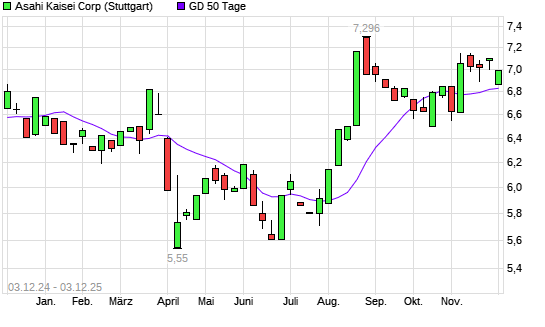 Mit dem Anstieg auf 6,95 EUR hat die Asahi Kasei-Aktie am 02.12.2025 die 50-Tage-Linie nach oben gekreuzt.