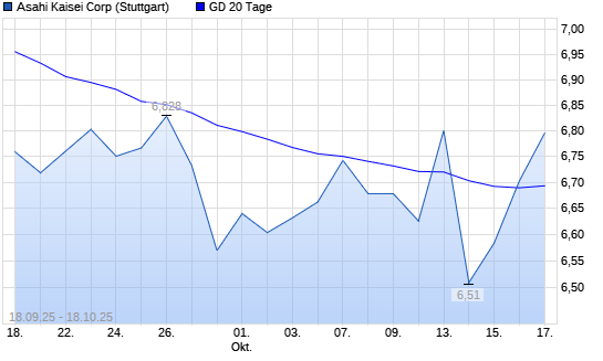 Mit dem Rücksetzer auf 6,73 EUR hat die Asahi Kasei-Aktie am 17.10.2025 die 20-Tage-Linie nach unten gekreuzt.